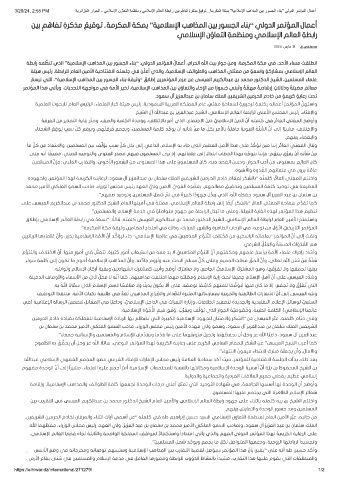 3/20/24, 2:55 PM ﺔﯾرﺋازﺟﻟا راوﺣﻟا - ﻲﻣﻼﺳﻹا ن ُ وﺎﻌﺗﻟا ِﺔﻣظﻧﻣو ﻲﻣﻼﺳﻹا مﻟﺎﻌﻟا ِﺔطﺑار نﯾﺑ ٍ مُھﺎﻔﺗ ِةرﻛذﻣ ُﻊﯾﻗوﺗ ..ﺔﻣرﻛﻣﻟا ﺔﻛﻣﺑ "ﺔﯾﻣﻼﺳﻹا بھاذﻣﻟا نﯾﺑ روﺳﺟﻟا ءﺎﻧﺑ" ﻲﻟودﻟا رﻣﺗؤﻣﻟا لﺎﻣﻋأ