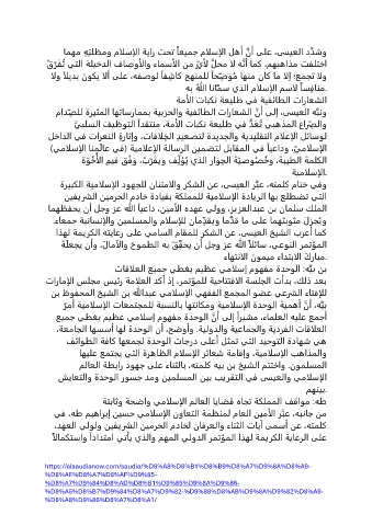 ةريبكلا ةيمالسإلا دوهجلل نانتمالاو ركشلا نع ،ىسيعلا رَّبع ،هتملك ماتخ يفو