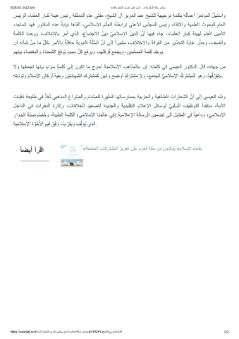 ﺲﯿﺋﺮﻟا ءﺎﻤﻠﻌﻟا رﺎﺒﻛ ﺔﺌﯿھ ﺲﯿﺋر ﺔﻜﻠﻤﻤﻟا مﺎﻋ ﻲﺘﻔﻣ ،ﺦﯿﺸﻟا لآ ﺰﯾﺰﻌﻟا ﺪﺒﻋ ﺦﯿﺸﻠﻟ ﺔﯿﺒﯿﺣﺮﺗ ٍﺔﻤﻠﻜﺑ ﮫَﻟﺎﻤﻋأ ُ ﺮﻤﺗﺆﻤﻟا ﱠﻞﮭﺘﺳاو