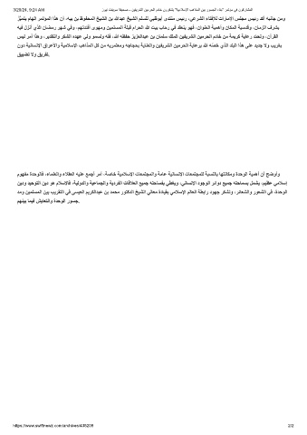 3/20/24, 9:24 AM زوﯾﻧ تﻔﯾوﺳ ﺔﻔﯾﺣﺻ - نﯾﻔﯾرﺷﻟا نﯾﻣرﺣﻟا مدﺎﺧ نورﻛﺷﯾ "ﺔﯾﻣﻼﺳﻹا بھاذﻣﻟا نﯾﺑ روﺳﺟﻟا ءﺎﻧﺑ" رﻣﺗؤﻣ ﻲﻓ نوﻛرﺎﺷﻣﻟا