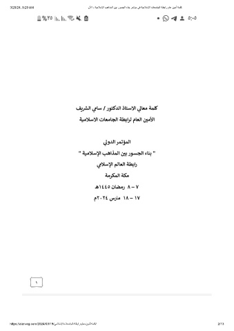 3/20/24, 9:29 AM نﻵا - ﺔﯾﻣﻼﺳﻹا بھاذﻣﻟا نﯾﺑ روﺳﺟﻟا ءﺎﻧﺑ رﻣﺗؤﻣ ﻲﻓ ﺔﯾﻣﻼﺳﻹا تﺎﻌﻣﺎﺟﻟا ﺔطﺑار مﺎﻋ نﯾﻣأ ﺔﻣﻠﻛ https://alan-eg.com/2024/03/19/ﻲﻣﻼﺳﻹا-تﺎﻌﻣﺎﺟﻟا-ﺔطﺑار-مﺎﻋ-نﯾﻣأ-ﺔﻣﻠﻛ/ 2/13