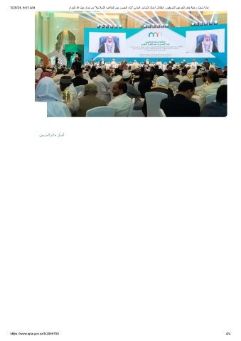 3/20/24, 8:51 AM مارﺣﻟا ﷲ تﯾﺑ راوﺟ نﻣ "ﺔﯾﻣﻼﺳﻹا بھاذﻣﻟا نﯾﺑ روﺳﺟﻟا ءﺎﻧﺑ" ﻲﻟودﻟا رﻣﺗؤﻣﻟا لﺎﻣﻋأ قﻼطﻧا ..نﯾﻔﯾرﺷﻟا نﯾﻣرﺣﻟا مدﺎﺧ ﺔﯾﺎﻋر تﺣﺗ / مﺎﻋ ﻦﯿﻣﺮﺤﻟا مدﺎﺧ رﺎﺒﺧأ https://www.spa.gov.sa/N2066765 4/4