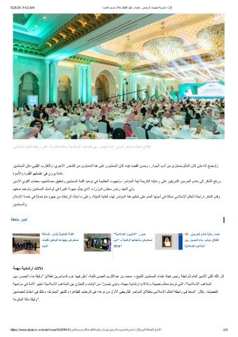 ِ ﻦﯿﻣﺎﻀﻤﻟ ٍداﺪﺘﻣا ﻲﻓ ﻚﻟذو ،كرﺎﺒﻤﻟا ﺮﮭﺸﻟاو ةﺮھﺎﻄﻟا بﺎﺣﺮﻟا ﻲﻓ ،ﮫﻋﻮﻧ ﻦﻣ لوﻷا ﻲﺨﯾرﺎﺘﻟا ِ ﺮﻤﺗﺆﻤﻟا قﻼطﺈﺑ ﻲﻣﻼﺳﻹا ﻢﻟﺎﻌﻟا ﺔﻄﺑار ﻲﻓ ُﺪﻌﺴﻧ" :لﺎﻗو .تﺎﯾﺪﺤﺘﻟا