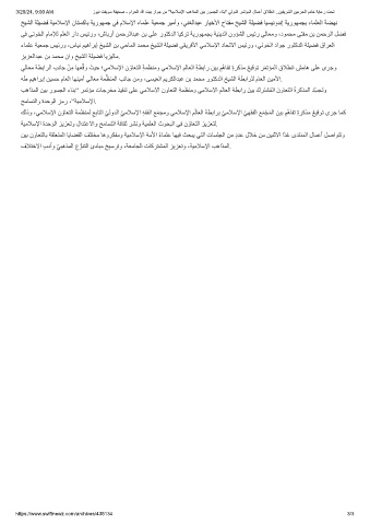 ﺦﯿﺸﻟا ﺔﻠﯿﻀﻓ ﺔﯿﻣﻼﺳﻹا نﺎﺘﺴﻛﺎﺑ ﺔﯾرﻮﮭﻤﺟ ﻲﻓ مﻼﺳﻹا ءﺎﻤﻠﻋ ﺔﯿﻌﻤﺟ ﺮﯿﻣأو ،ﻲﻨﻐﻟاﺪﺒﻋ رﺎﯿﺧﻷا حﺎﺘﻔﻣ ﺦﯿﺸﻟا ﺔﻠﯿﻀﻓ ﺎﯿﺴﯿﻧوﺪﻧإ ﺔﯾرﻮﮭﻤﺠﺑ ءﺎﻤﻠﻌﻟا ﺔﻀﮭﻧ