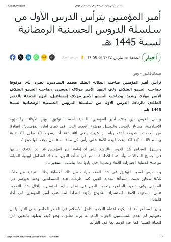 ﺔﻨﺴﻟ ﺔﯿﻧﺎﻀﻣﺮﻟا ﺔﯿﻨﺴﺤﻟا سورﺪﻟا ﺔﻠﺴﻠﺳ ﻦﻣ لوﻷا سرﺪﻟا ،طﺎﺑﺮﻟﺎﺑ ﻲﻜﻠﻤﻟا
