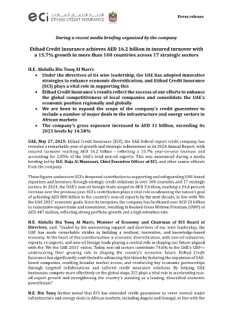 strategies to enhance economic diversi�ication, and Etihad Credit Insurance