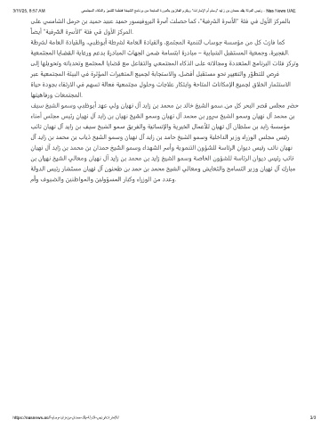 3/11/25, 8:57 AM ﻲﻌﻣﺗﺟﻣﻟا ءﺎﻛذﻟاو زﯾﻣﺗﻠﻟ ﺔﻣطﺎﻓ ﺔﺧﯾﺷﻟا ﺞﻣﺎﻧرﺑ نﻣ ﺔﻌﺑﺎﺳﻟا ةرودﻟﺎﺑ نﯾزﺋﺎﻔﻟا مرﻛﯾو ”تارﺎﻣﻹا مأ مﺎﺳو“ دﯾاز نﺑ نادﻣﺣ دﻠﻘﯾ ﺔﻟودﻟا سﯾﺋر - Nas News UAE