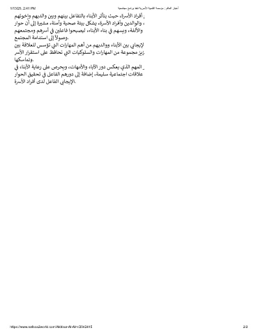 ءﺎﻨﺑﻷا ﺔ ﺎﻋر ﻋ صﺮﺤ و ،تﺎﻬﻣﻷاو ءﺎ ﻵا رود ﺲﻜﻌ يﺬﻟا ﻢﻬﻤﻟا ر