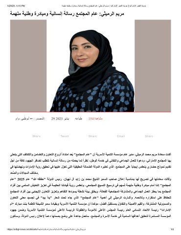 1/29/25, 5:10 PM ﺔﻣﮭﻠﻣ ﺔﯾﻧطو ةردﺎﺑﻣو ﺔﯾﻧﺎﺳﻧإ ﺔﻟﺎﺳر ﻊﻣﺗﺟﻣﻟا مﺎﻋ :ﻲﺛﯾﻣرﻟا مﯾرﻣ | ﮫﯾﺗارﺎﻣﻹا رﺟﻔﻟا ةدﯾرﺟ | ﮫﯾﺗارﺎﻣﻹا رﺟﻔﻟا ةدﯾرﺟ
