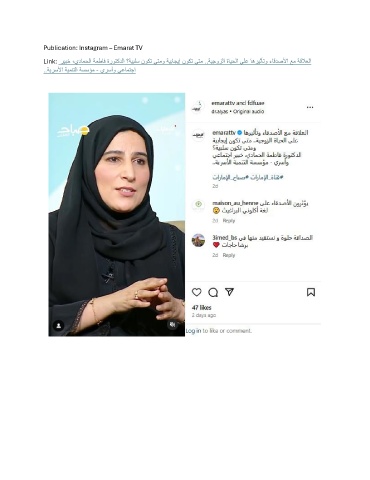 Publication: Instagram – Emarat TV Link: ريبخ ،يدامحلا ةمطاف ةروتكدلا ؟ةيبلس نوكت ىتمو ةيباجيإ نوكت ىتم ..ةيجوزلا ةايحلا ىلع اهريثأتو ءاقدصلأا عم ةقلاعلا ..ةيرسلأا ةيمنتلا ةسسؤم - يرسأو يعامتجا