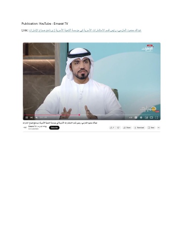 Publication: YouTube - Emarat TV Link: تاراملإا حابص جمانرب | ةيرسلأا ةيمنتلا ةسسؤم يف ةيرسلأا تاراشتسلاا مسق سيئر ،يمزاملا دومحم اللهدبع