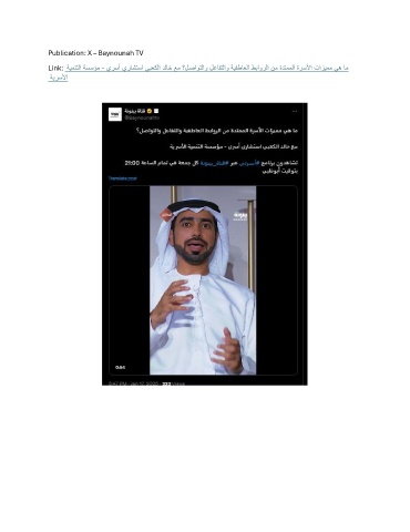Publication: X – Baynounah TV Link: ةيمنتلا ةسسؤم - يرسأ يراشتسا يبعكلا دلاخ عم ؟لصاوتلاو لعافتلاو ةيفطاعلا طباورلا نم ةدتمملا ةرسلأا تازيمم يه ام ةيرسلأا