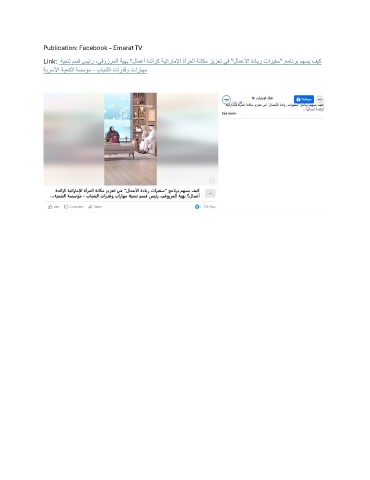 Publication: Facebook – Emarat TV Link: ةيمنت مسق سيئر ،يقوزرملا ةيهب ؟لامعأ ةدئارك ةيتاراملإا ةأرملا ةناكم زيزعت يف "لامعلأا ةداير تاريفس" جمانرب مهسي فيك ةيرسلأا ةيمنتلا ةسسؤم - بابشلا تاردقو تاراهم