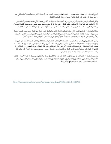 ةمطاف ةخيشلا ومس ،«تارامﻹا مأ» ةسائرب ،ةلوفطلاو ةمومﻸل ىلعﻷا سلجملا هيلوي يذلا ريبكلا مامتهﻻا نوثدحتملا لوانتو
