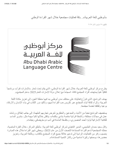3/18/25, 11:09 AM ﻲﻧطوﻟا ةءارﻘﻟا رﮭﺷ لﻼﺧ ﺔﯾﻌﻣﺗﺟﻣ تﺎﯾﻟﺎﻌﻓ ﺔﻗﺎﺑ ..«ﺔﯾﺑرﻌﻟا ﺔﻐﻠﻟ ﻲﺑظوﺑأ» | ﺔﯾﺗارﺎﻣﻹا دﺎﺣﺗﻻا ﺔﻔﯾﺣﺻ