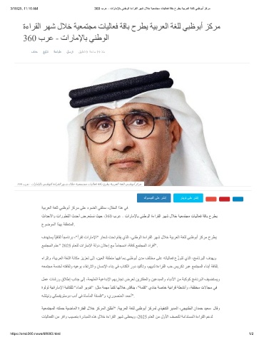 3/18/25, 11:10 AM 360 برﻋ - تارﺎﻣﻹﺎﺑ ﻲﻧطوﻟا ةءارﻘﻟا رﮭﺷ لﻼﺧ ﺔﯾﻌﻣﺗﺟﻣ تﺎﯾﻟﺎﻌﻓ ﺔﻗﺎﺑ حرطﯾ ﺔﯾﺑرﻌﻟا ﺔﻐﻠﻟ ﻲﺑظوﺑأ زﻛرﻣ