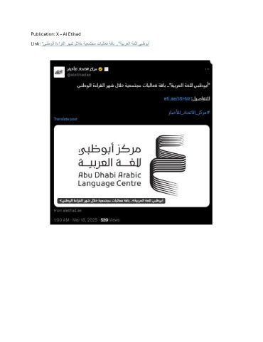 Publication: X – Al Etihad Link: "ينطولا ةءارقلا رهش للاخ ةيعمتجم تايلاعف ةقاب .."ةيبرعلا ةغلل يبظوبأ