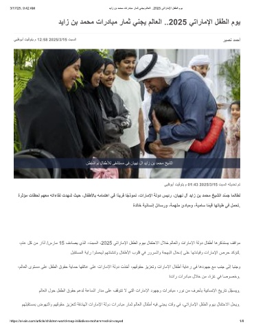 ،مﺎﻋ لﻛ نﻣ راذآ /سرﺎﻣ 15 فدﺎﺻﯾ يذﻟا ،تﺑﺳﻟا ،2025 ﻲﺗارﺎﻣﻹا لﻔطﻟا موﯾﺑ لﺎﻔﺗﺣﻻا لﻼﺧ مﻟﺎﻌﻟاو تارﺎﻣﻹا ﺔﻟود لﺎﻔطأ ﺎھرﻛذﺗﺳﯾ فﻗاوﻣ