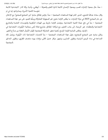 تﺎمﻫﺎسمﻟا ﺔئيﻫ رود ﻰﻠﻋ ءوضﻟا طّ ﻠسيو ﺔكرتشمﻟا ﺔيﻟوؤسمﻟا ميق زيزﻌتﺑ ﺎنﻣازتﻟا سكﻌي ﺎﻣ ،تارﺎﻣﻹا ﺔﻟود ﻲﻓ 2025 ﻊمتجمﻟا مﺎﻋ نﻋ