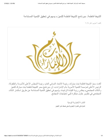3/18/25, 1:59 PM ﺔﻣادﺗﺳﻣﻟا ﺔﯾﻣﻧﺗﻟا ﻖﯾﻘﺣﺗ ﻲﻓ مﮭﺳﯾ «زﯾﻣﺗﻠﻟ ﺔﻣطﺎﻓ ﺔﺧﯾﺷﻟا ﺞﻣﺎﻧرﺑ» :ﺔﻣطﺎﻓ ﺔﺧﯾﺷﻟا | ﺔﯾﺗارﺎﻣﻹا دﺎﺣﺗﻻا ﺔﻔﯾﺣﺻ