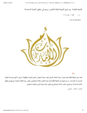 3/18/25, 1:59 PM ﺔﻣادﺗﺳﻣﻟا ﺔﯾﻣﻧﺗﻟا ﻖﯾﻘﺣﺗ ﻲﻓ مﮭﺳﯾ «زﯾﻣﺗﻠﻟ ﺔﻣطﺎﻓ ﺔﺧﯾﺷﻟا ﺞﻣﺎﻧرﺑ» :ﺔﻣطﺎﻓ ﺔﺧﯾﺷﻟا - Hatt Post | تﺳوﺑ تﺎھHatt Post | تﺳوﺑ تﺎھ