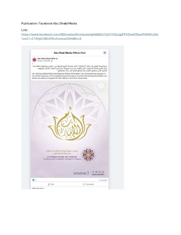 Publication: Facebook Abu Dhabi Media Link: https://www.facebook.com/ADmediaoffice/posts/pfbid02o7y3rYHQLbgiFXYZwoP25ywTGNWLUVy 1asG1z21WfgD38D2RDvKoriwsZ3WdBho3l