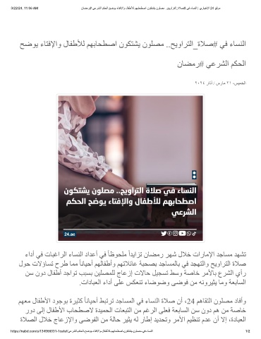 3/22/24, 11:06 AM نﺎﺿﻣر# ﻲﻋرﺷﻟا مﻛﺣﻟا ﺢﺿوﯾ ءﺎﺗﻓﻹاو لﺎﻔطﻸﻟ مﮭﺑﺎﺣطﺻا نوﻛﺗﺷﯾ نوﻠﺻﻣ ..ﺢﯾوارﺗﻟا_ةﻼﺻ# ﻲﻓ ءﺎﺳﻧﻟا | يرﺎﺑﺧﻹا 24 ﻊﻗوﻣ
