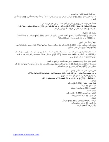 نع ًامهرد ) 15 ( :يه ًادقن اهتميقو ،ًادقن وأ ًانيع اهجارخإ زوجيو ،موي لك نع رُبلا نم غك ) 3.250 ( رادقمب نيكسم ماعطإ