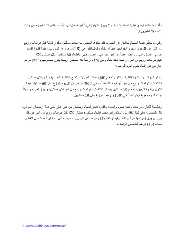 لك نع رُبلا نم عبرو تامارغوليك ةثلاث رادقمب ؛نيكسم ماعطإ بجي نيتروكذملا نيترافكلا اتلك يف« :سلجملا لاق
