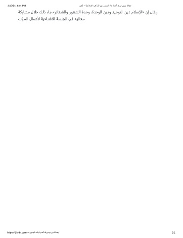 ﺔﻛرﺎﺸﻣ ل ﺧ ﻚﻟذ ءﺎﺟ.«ﺮﺋﺎﻌﺸﻟاو رﻮﻌﺸﻟا ةﺪﺣو ،ةﺪﺣﻮﻟا ﻦﻳدو ﺪﻴﺣﻮﺘﻟا ﻦﻳد م ﺳ ا» نإ لﺎﻗو