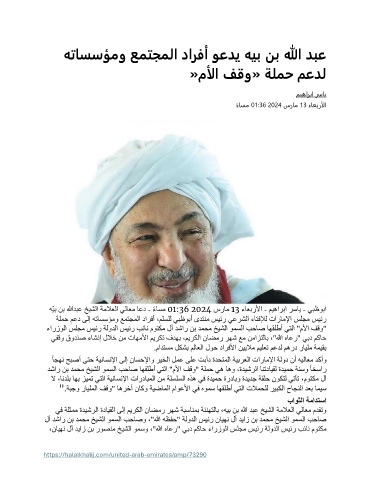 دشار نب دمحم خيشلا ومسلا بحاص اهقلطأ يتلا "ملأا فقو" ةلمح يه اهو ،ةديشرلا انتدايقل ةديمح ةنسو ًاخسار