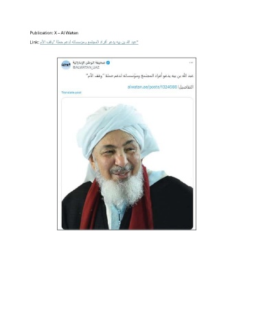 Publication: X – Al Watan Link: ملأا فقو“ ةلمح معدل هتاسسؤمو عمتجملا دارفأ وعدي هيب نب الله دبع”