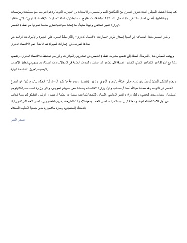 ﺎﯿﺟﻮﻟﻮﻨﻜﺘﻟاو ﺔﻋﺎﻨﺼﻟا ةرازو ﻞﯿﻛو ،يﺪﯾﻮﺴﻟا ﻊﻨﯾﻮﺻ ﺮﻤﻋ ةدﺎﻌﺳو ،دﺎﺼﺘﻗﻻا ةرازو ﻞﯿﻛو ،ﺢﻟﺎﺻ لآ ﺪﻤﺣأ ﷲﺪﺒﻋ ةدﺎﻌﺳ ﻢھو ،ﺔﻟوﺪﻟا ﻲﻓ صﺎﺨﻟا