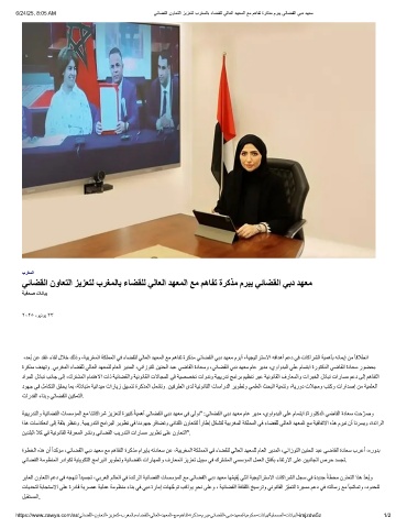 6/24/25, 8:05 AM ﻲﺋﺎﺿﻘﻟا نوﺎﻌﺗﻟا زﯾزﻌﺗﻟ برﻐﻣﻟﺎﺑ ءﺎﺿﻘﻠﻟ ﻲﻟﺎﻌﻟا دﮭﻌﻣﻟا ﻊﻣ مھﺎﻔﺗ ةرﻛذﻣ مرﺑﯾ ﻲﺋﺎﺿﻘﻟا ﻲﺑد دﮭﻌﻣ