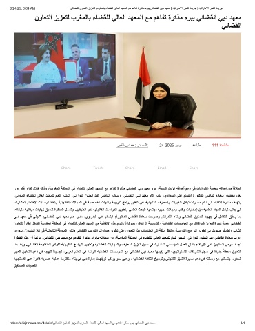 6/24/25, 8:04 AM ﻲﺋﺎﺿﻘﻟا نوﺎﻌﺗﻟا زﯾزﻌﺗﻟ برﻐﻣﻟﺎﺑ ءﺎﺿﻘﻠﻟ ﻲﻟﺎﻌﻟا دﮭﻌﻣﻟا ﻊﻣ مھﺎﻔﺗ ةرﻛذﻣ مرﺑﯾ ﻲﺋﺎﺿﻘﻟا ﻲﺑد دﮭﻌﻣ | ﮫﯾﺗارﺎﻣﻹا رﺟﻔﻟا ةدﯾرﺟ | ﮫﯾﺗارﺎﻣﻹا رﺟﻔﻟا ةدﯾرﺟ