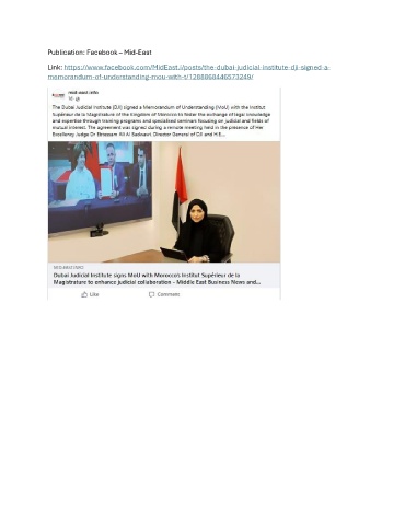 Publication: Facebook – Mid-East Link: https://www.facebook.com/MidEast.i/posts/the-dubai-judicial-institute-dji-signed-a- memorandum-of-understanding-mou-with-t/1288868446573249/