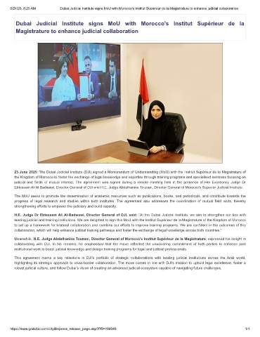 6/24/25, 8:25 AM       Dubai Judicial Institute signs MoU with Morocco's Institut Supérieur de la Magistrature to enhance judicial collaboration