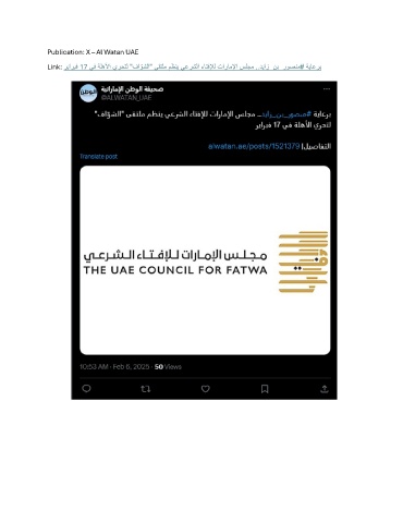 Publication: X – Al Watan UAE Link: رياربف 17 يف ةلهلأا يرحتل "فا ّ وشلا" ىقتلم مظني يعرشلا ءاتفلإل تاراملإا سلجم ..دياز_نب_روصنم# ةياعرب