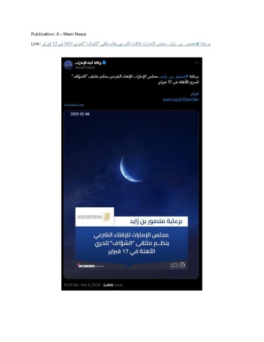 Publication: X – Wam News Link: رياربف 17 يف ةلهلأا يرحتل "فا ّ وشلا" ىقتلم مظني يعرشلا ءاتفلإل تاراملإا سلجم ..دياز_نب_روصنم# ةياعرب
