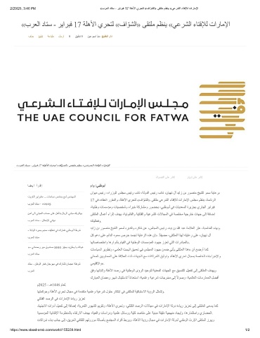 17 ﻲﻓ هدﺎﻘﻌﻧا رﺮﻘﻤﻟاو ،ﺔﻠھﻷا يﺮﺤﺘﻟ «فا ّ ﻮﺸﻟا» ﻰﻘﺘﻠﻣ ﻲﻋﺮﺸﻟا ءﺎﺘﻓﻺﻟ تارﺎﻣﻹا ﺲﻠﺠﻣ ﻢﻈﻨﯾ ،ﺔﺳﺎﺋﺮﻟا