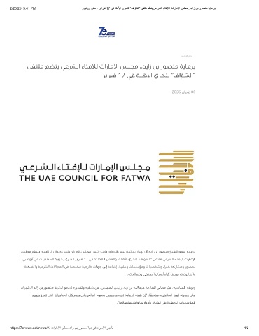 2/20/25, 3:41 PM زوﯾﻧ يا نﻔﺳ - رﯾارﺑﻓ 17 ﻲﻓ ﺔﻠھﻷا يرﺣﺗﻟ ”فا ّ وﺷﻟا“ ﻰﻘﺗﻠﻣ مظﻧﯾ ﻲﻋرﺷﻟا ءﺎﺗﻓﻺﻟ تارﺎﻣﻹا سﻠﺟﻣ ..دﯾاز نﺑ روﺻﻧﻣ ﺔﯾﺎﻋرﺑ