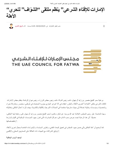 https://emiratenewsday.com/uae/لا-ﻰﻘﺗﻠﻣ-مظﻧﯾ-ﻲﻋرﺷﻟا-ءﺎﺗﻓﻺﻟ-تارﺎﻣﻹا/ 1/2