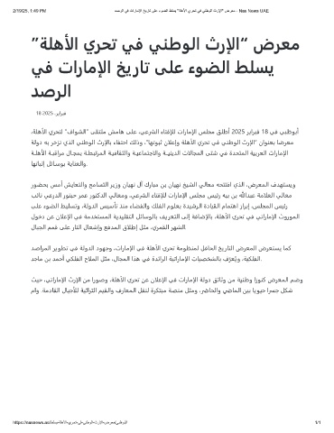 2/19/25, 1:49 PM دﺻرﻟا ﻲﻓ تارﺎﻣﻹا ﺦﯾرﺎﺗ ﻰﻠﻋ ءوﺿﻟا طﻠﺳﯾ "ﺔﻠھﻷا يرﺣﺗ ﻲﻓ ﻲﻧطوﻟا ثرﻹا" ضرﻌﻣ - Nas News UAE