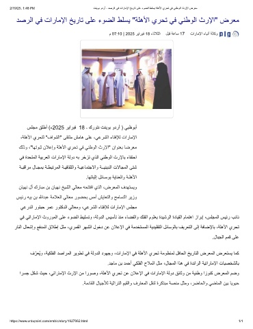 2/19/25, 1:48 PM تﻧﯾوﺑ ودرأ - دﺻرﻟا ﻲﻓ تارﺎﻣﻹا ﺦﯾرﺎﺗ ﻰﻠﻋ ءوﺿﻟا طﻠﺳﯾ ﺔﻠھﻷا يرﺣﺗ ﻲﻓ ﻲﻧطوﻟا ثرﻹا ضرﻌﻣ