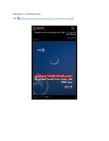 Publication: X – Al Khaleej Online Link: "2025 رياربف 28 قفاولما ةعمجلا ءاسم ناضمر للاه يرحتل وعدي "ءاتفلإل تاراملإا# سلجم