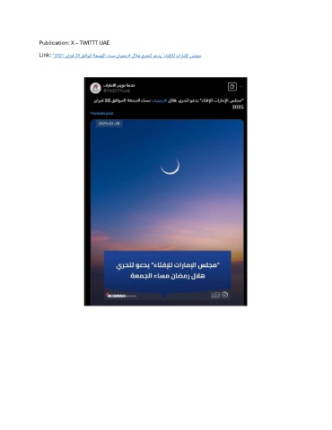 Publication: X – TWITTT UAE Link: "2025 رياربف 28 قفاولما ةعمجلا ءاسم ناضمر# للاه يرحتل وعدي "ءاتفلإل تاراملإا سلجم