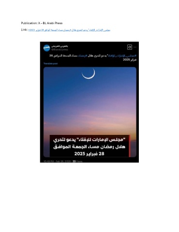 Publication: X – BL Arabi Press Link: #2025 رياربف 28 قفاولما ةعمجلا ءاسم ناضمر# للاه يرحتل وعدي "ءاتفلإل_تاراملإا_سلجم