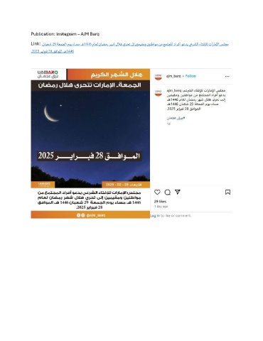 Publication: Instagram – AJM Barq Link: نابعش 29 ةعمجلا موي ءاسم ،ـه1446 ماعل ناضمر رهش للاه يرحت ىلإ نيميقمو نينطاوم نم عمتجلما دارفأ وعدي يعرشلا ءاتفلإل تاراملإا سلجم .2025 رياربف 28 قفاولما ،ـه1446