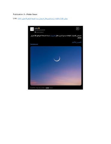 Publication: X – Msdar News Link: «2025 رياربف 28 قفاولما ةعمجلا ءاسم ناضمر# للاه يرحتل وعدي »ءاتفلإل تاراملإا سلجم.