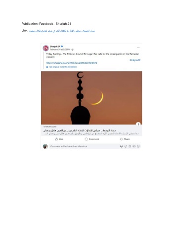 Publication: Facebook – Sharjah 24 Link: ناضمر للاه يرحتل وعدي يعرشلا ءاتفلإل تاراملإا سلجم ...ةعمجلا ءاسم